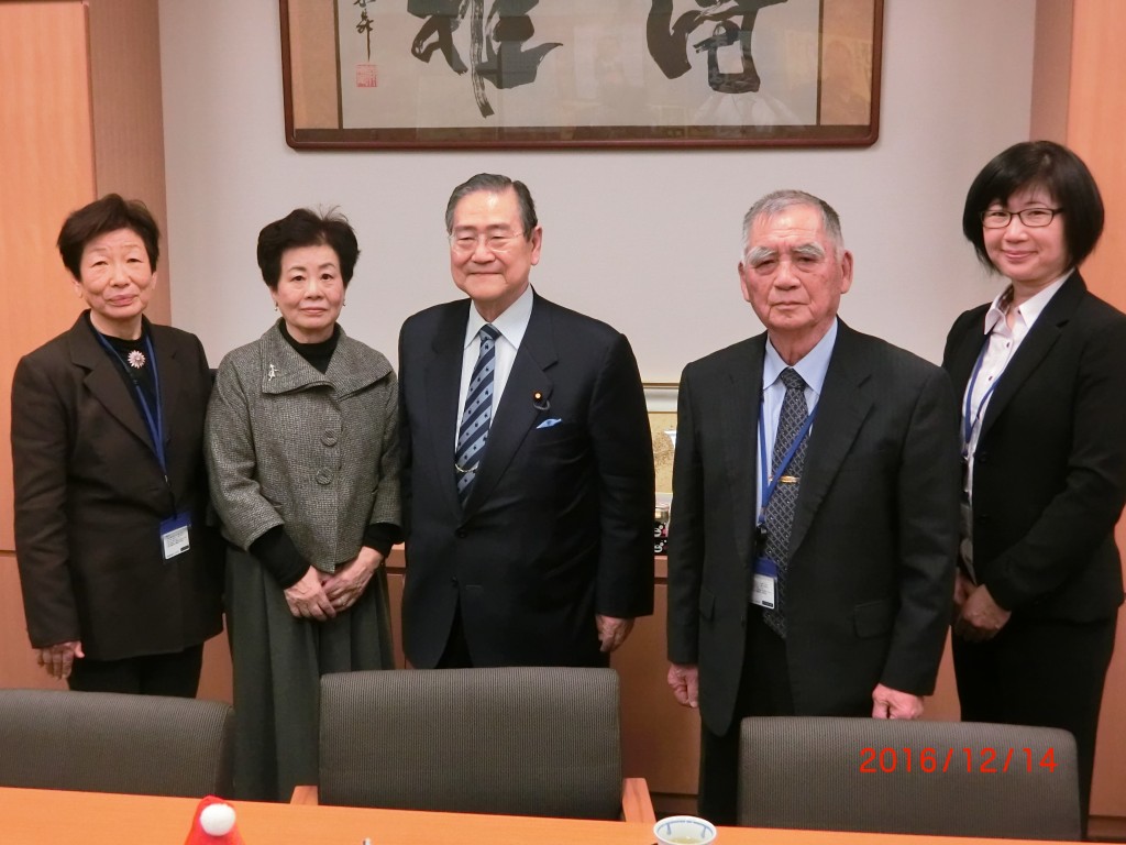 12月14日、永池理事長をはじめとする熊本県遺族連合会の皆さまが「第72回全国戦没者遺族大会」に出席されるにあたり、上京され、御挨拶に来所されました。