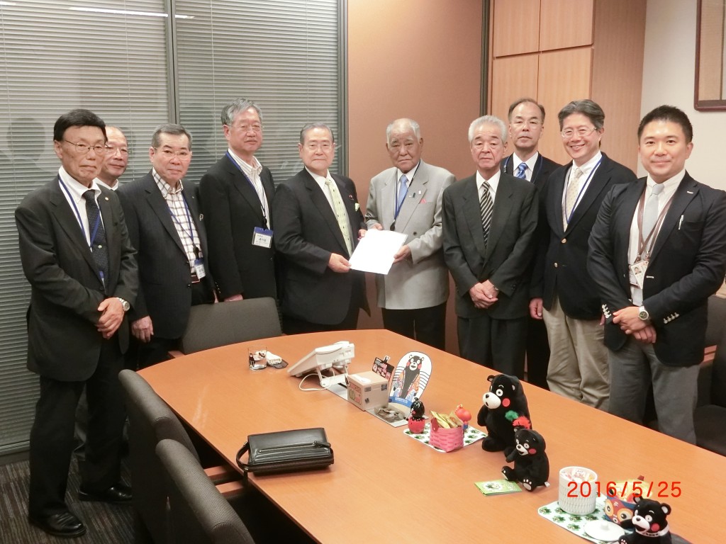 「酒税法及び酒税の保全及び酒類業組合等に関する一部を改正する法律案」が、5月12日に衆議院本会議で可決、5月27日に参議院本会議で可決予定となるにあたって、本日、全国70,000軒の組合員を代表して、全国小売酒販組合中央会松田会長をはじめとする役員の方々が訪問されました。
