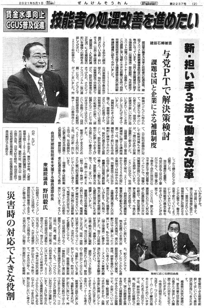 それに対するNHKニュースと、全建総連の機関紙の「建設業の働き方改革と技能者の処遇改善、建設アスベスト被害補償基金制度の創設について」の自民党 公共工事品質確保に関する議員連盟 最高顧問、与党 建設アスベスト対策プロジェクトチーム 座長としてのインタビューも併せてご高覧下さい。