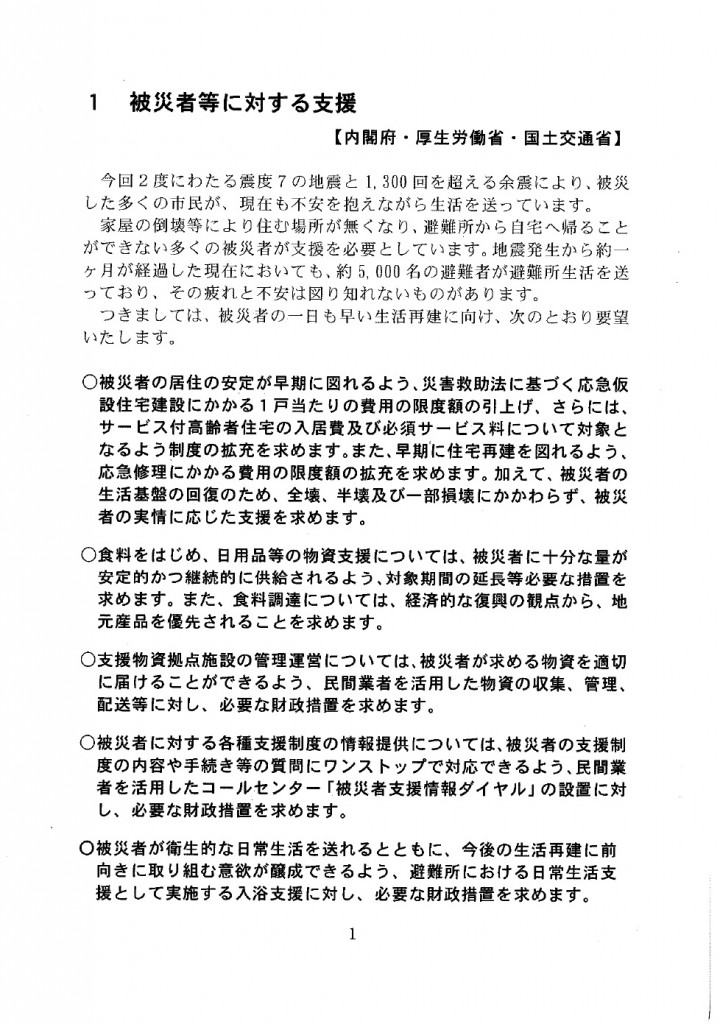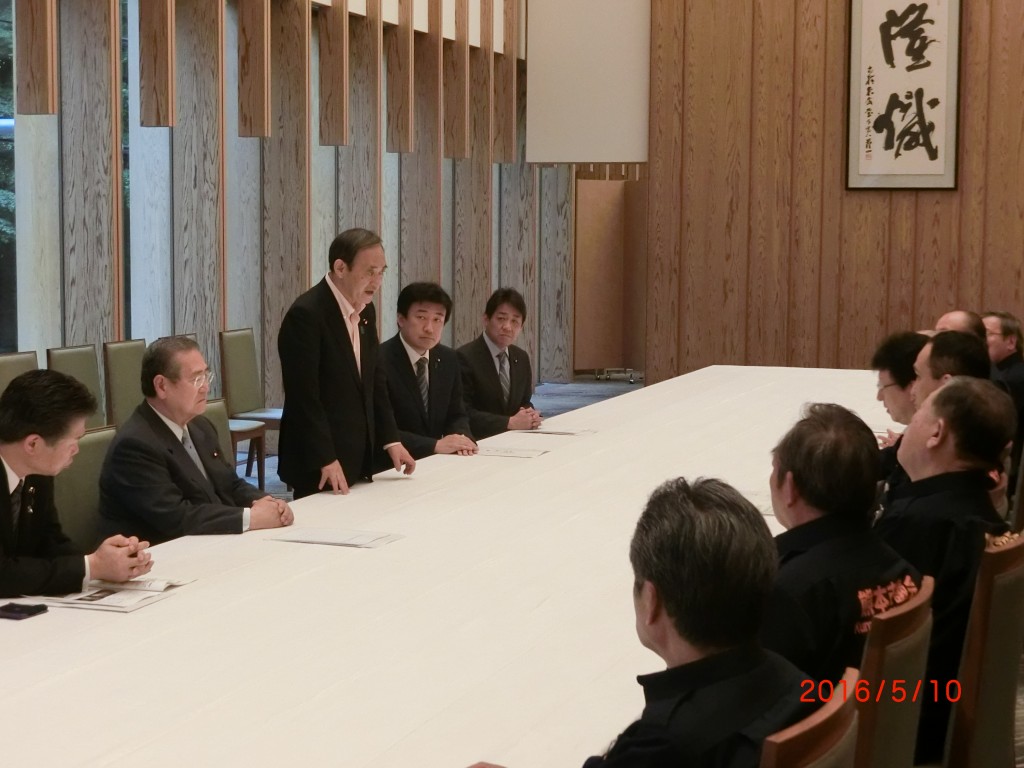 5月10日官邸にて、大西一史熊本市長、澤田昌作熊本市議会議長、津田征士郎自民党市議団団長をはじめとする江藤正行市議、竹原孝昭市議、坂田誠二市議、斉藤聰市議、三島義之市議の自民党市議団とチーム熊本で菅官房長官に熊本地震の緊急要望の申し入れに行きました。