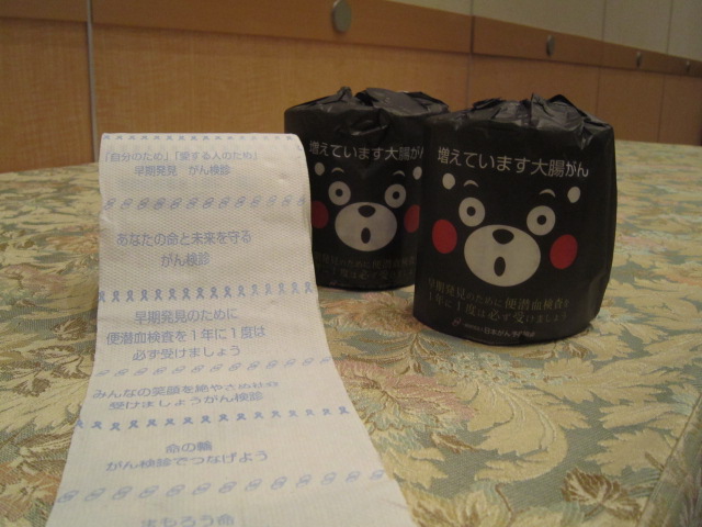 としてトイレットペーパーに「がん検診を受けましょう」と印字し、私の東京事務所