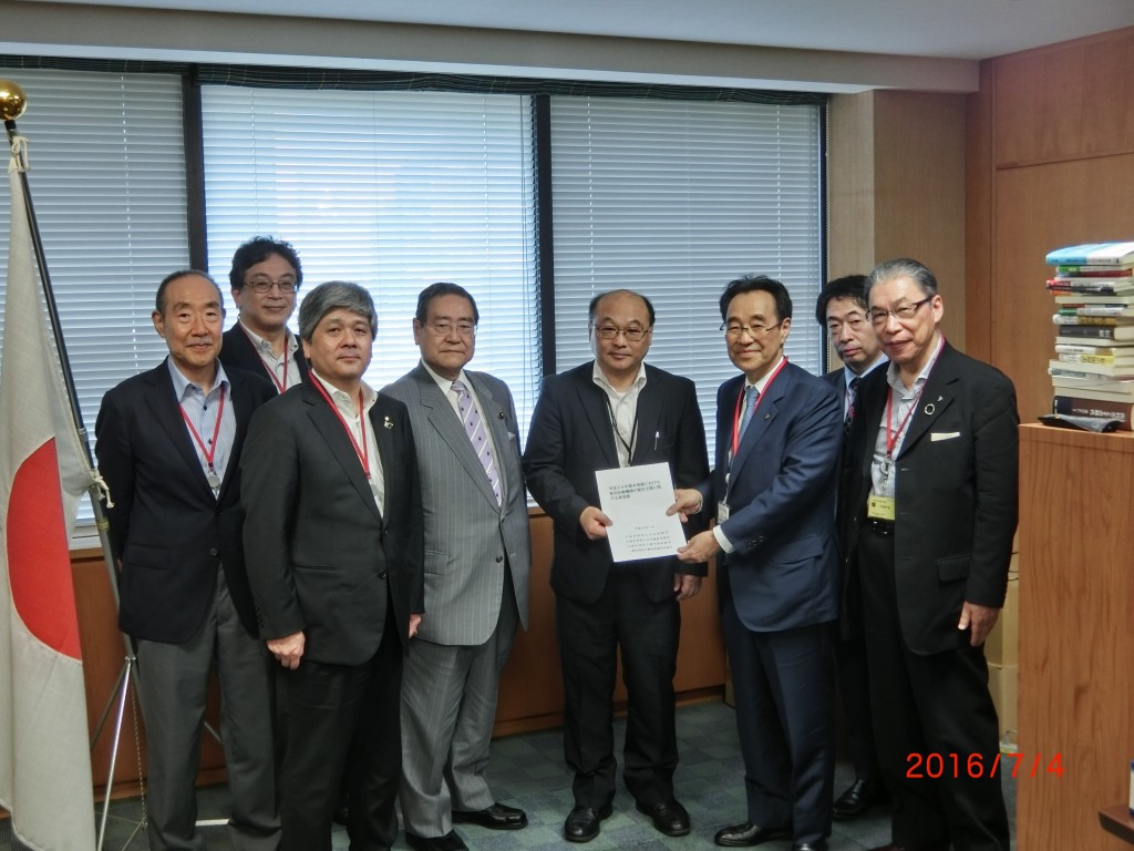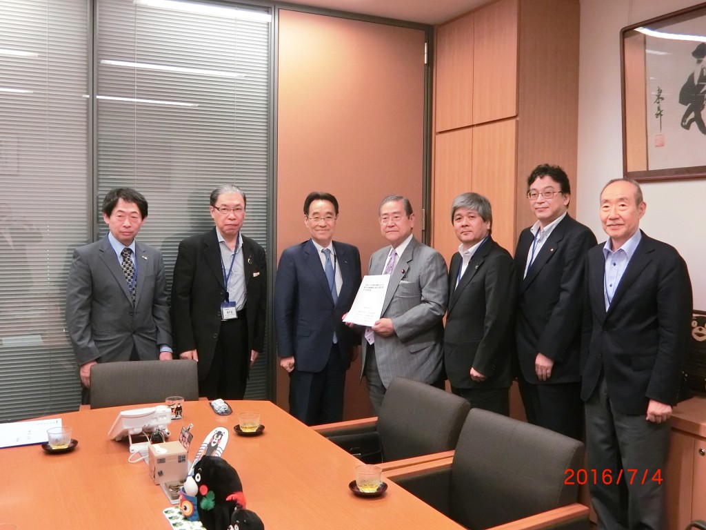 7月4日、熊本県医師会の福田会長、熊本県歯科医師会の浦田会長と、日本医師会の今村様、日本医師連盟の小杉様、日本歯科医師会の鴨田様と共に平成28年熊本地震に関する要望活動に同席し、厚生労働省で二川厚生労働事務次官と面談いたしました。