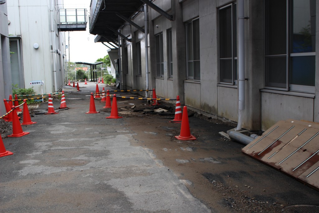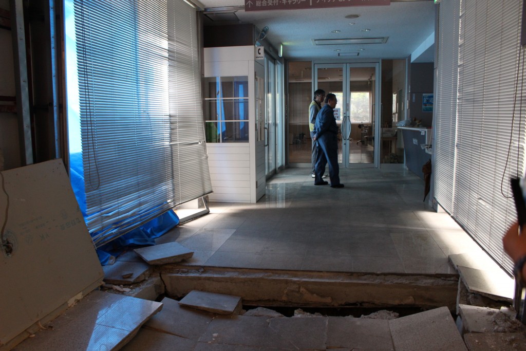 犬飼理事長の案内で、病院施設の被害状況等の説明をして頂きました。
