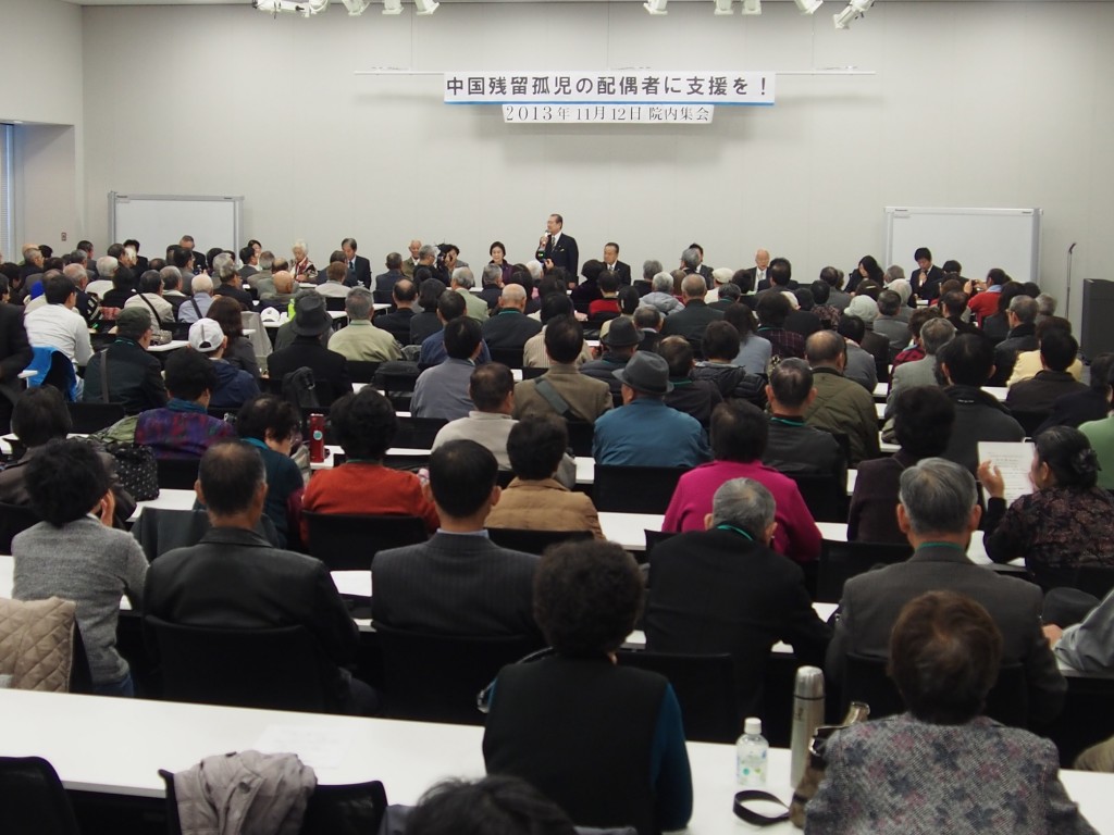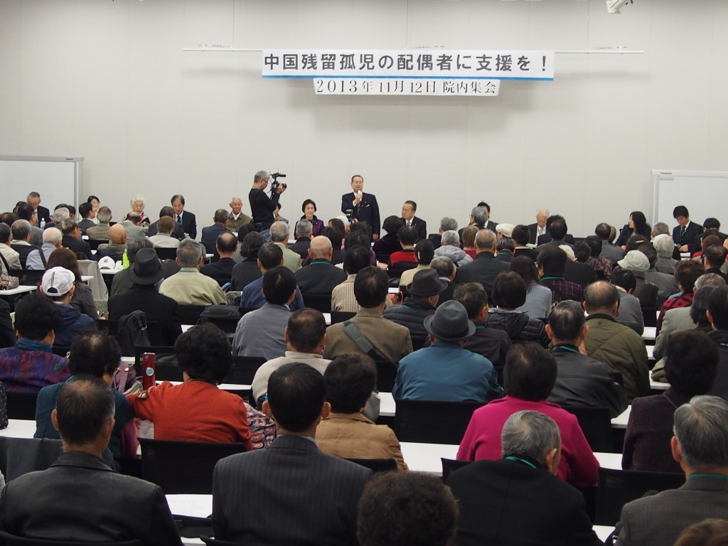 今般、立法改正によって、中国「残留」孤児の配偶者に対する新たな支援策を創設する気運が高まり、今国会における法案成立にむけて、あと一歩となり、院内集会が開催され多くの皆様方が参加されました。