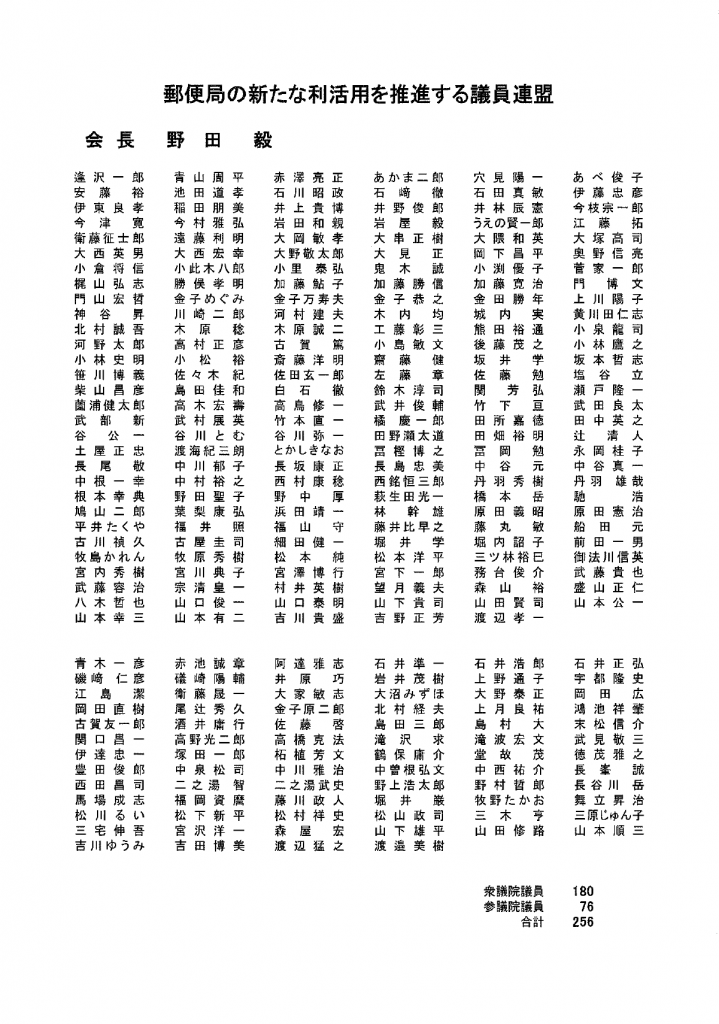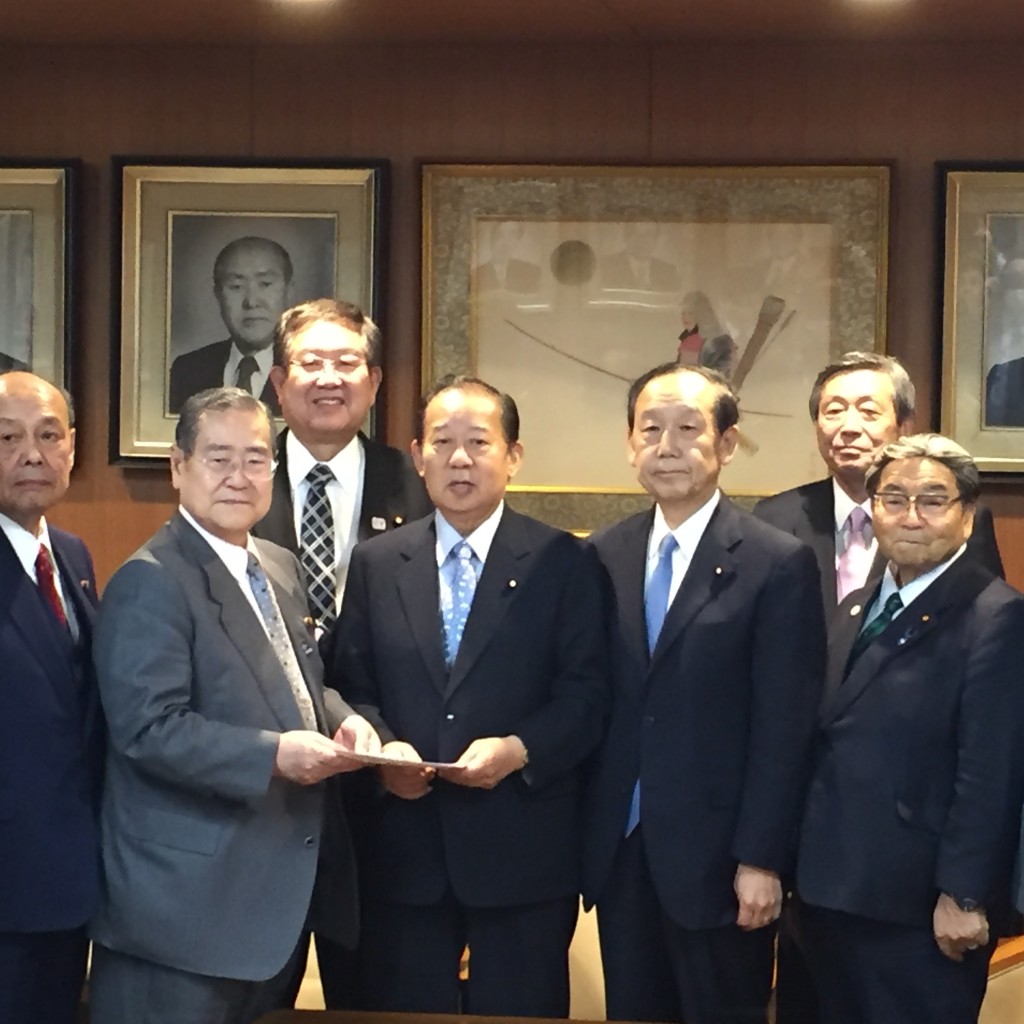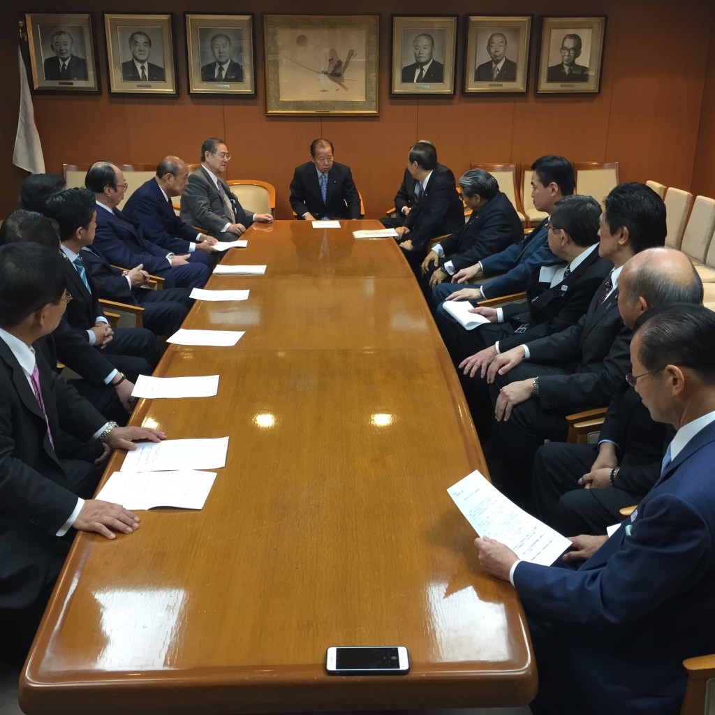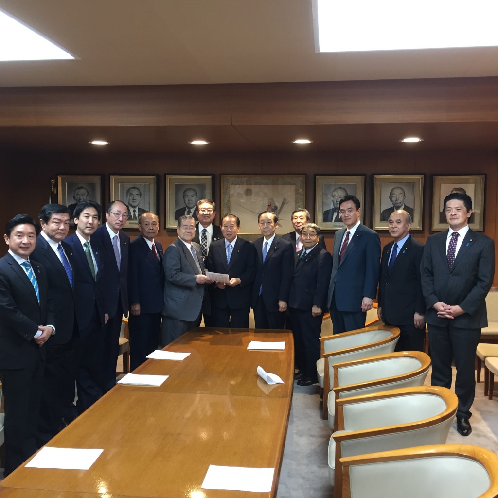 12月8日、衆議院議員180名、参議院議員76名、合計256名の国会議員で構成される「郵便局の新たな利活用を推進する議員連盟」の会長として、先日の高市総務大臣、麻生財務大臣、細田自民党総務会長に続いて、二階自民党幹事長へ決議の申入れに行きました。