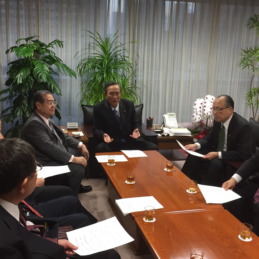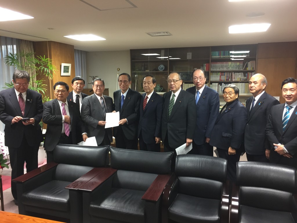 本日、12月7日、衆議院議員180名、参議院議員76名、合計256名の国会議員で構成される「郵便局の新たな利活用を推進する議員連盟」の会長として、先日の高市総務大臣、麻生財務大臣に続いて、細田自民党総務会長に決議の申入れに行きました。