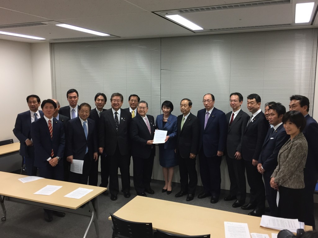 本日、11月30日、衆議院議員180名、参議院議員76名、合計256名の国会議員で構成される「郵便局の新たな利活用を推進する議員連盟」の会長として、高市総務大臣に決議の申入れに行きました。