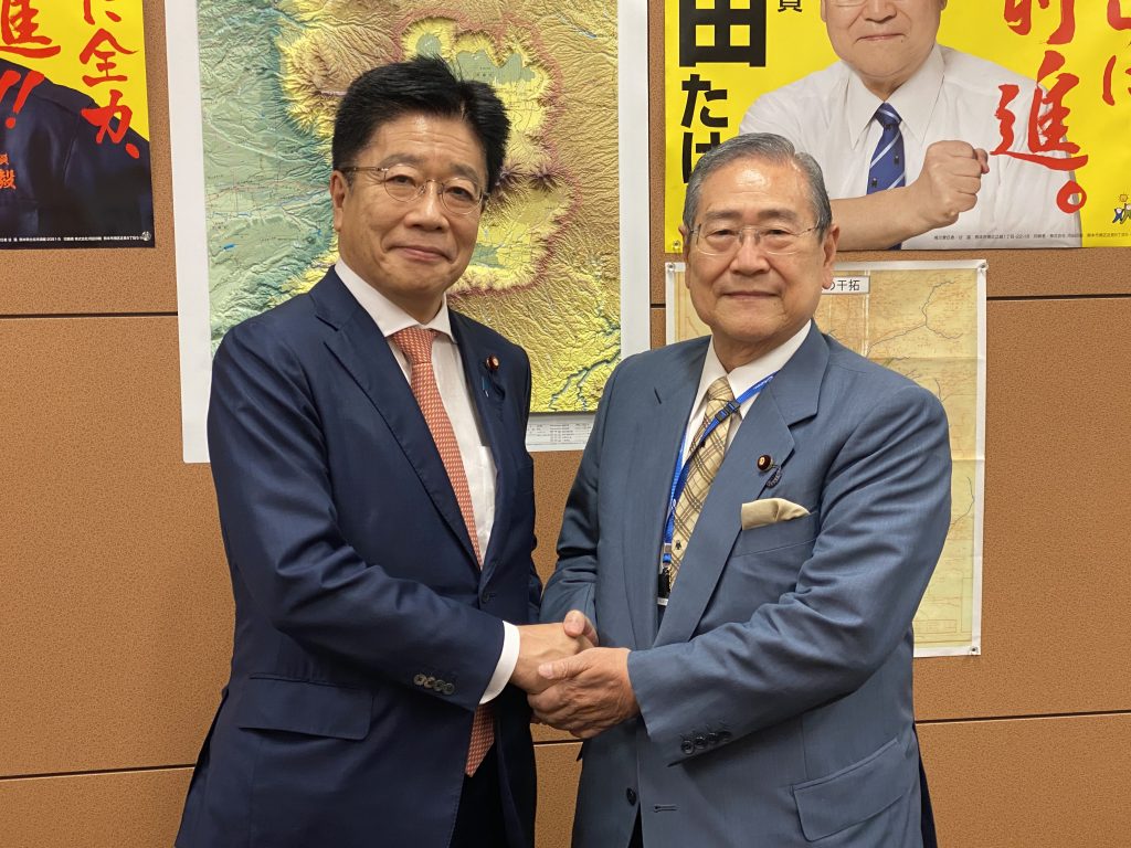 菅内閣の組閣が決まって、議員会館の事務所に加藤勝信官房長官が就任挨拶と意見交換に、田村憲久厚生労働大臣も就任挨拶と厚生労働行政やコロナ対策の意見交換に来所されました。