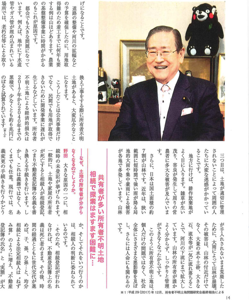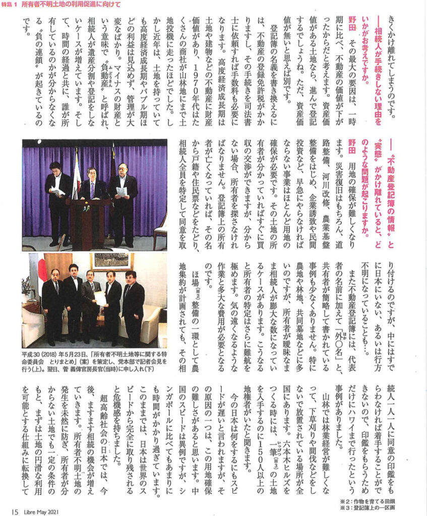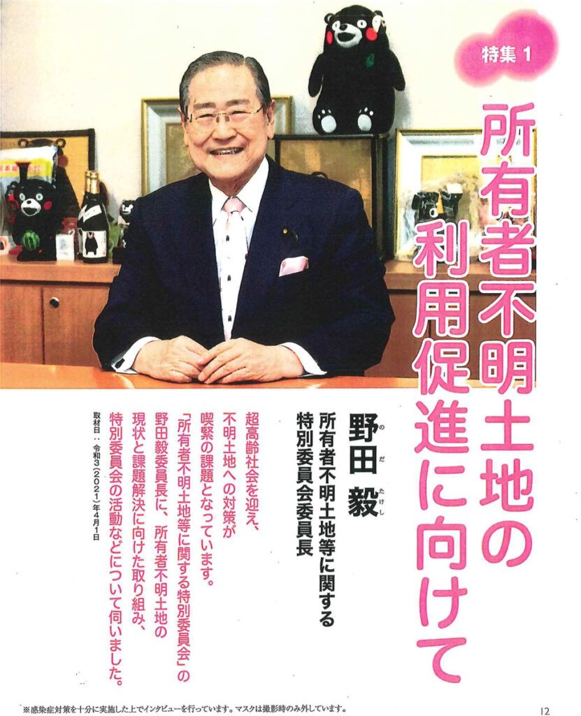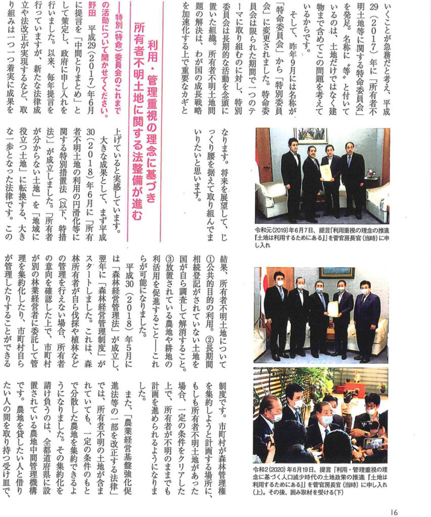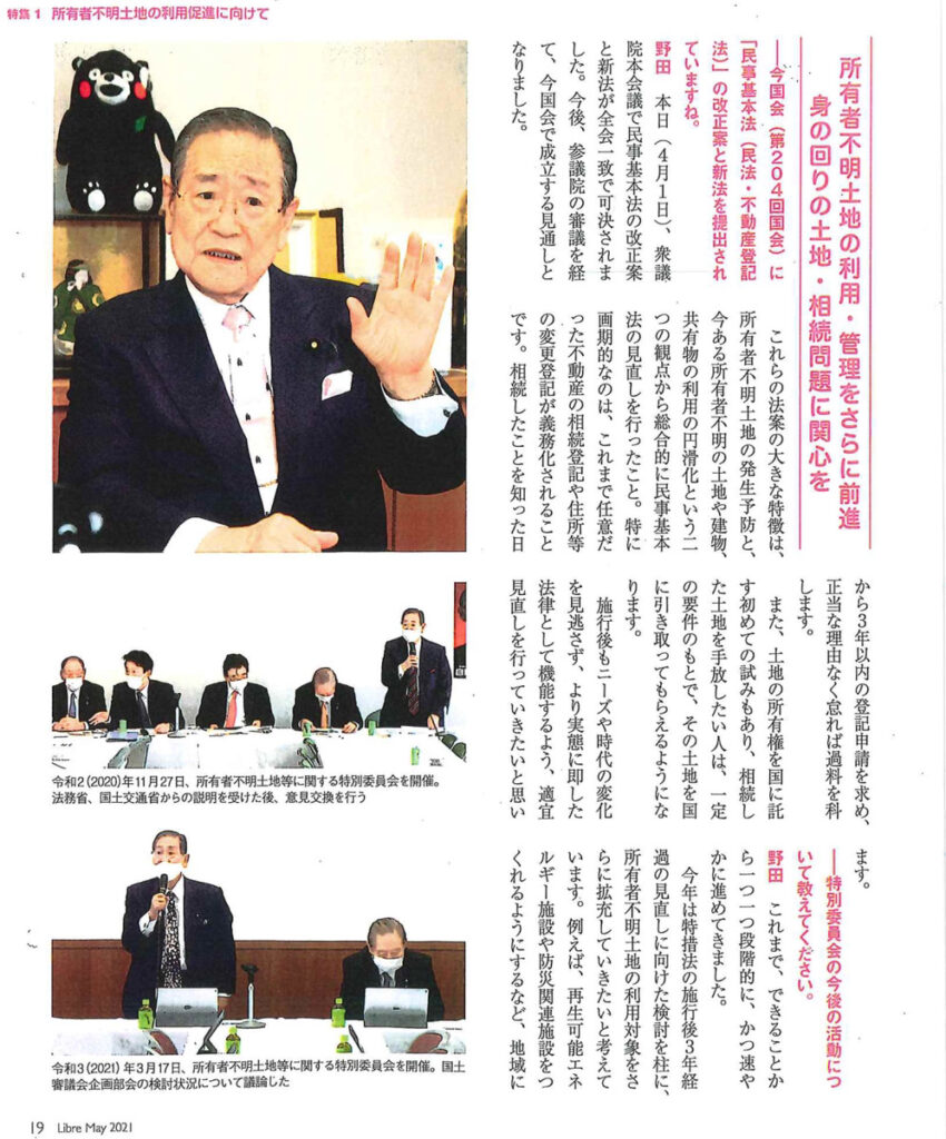 委員長を務めております、自民党所有者不明土地等に関する特別委員会で進めてきた所有者不明の土地の問題を解消するための関連法が、21日の参議院本会議で可決、成立しました。