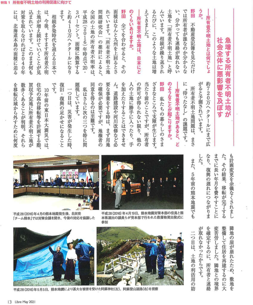 この同委員会の取り組みが自民党の女性誌『りぶる』でとりあげられ、委員長として インタビューを受けました。
